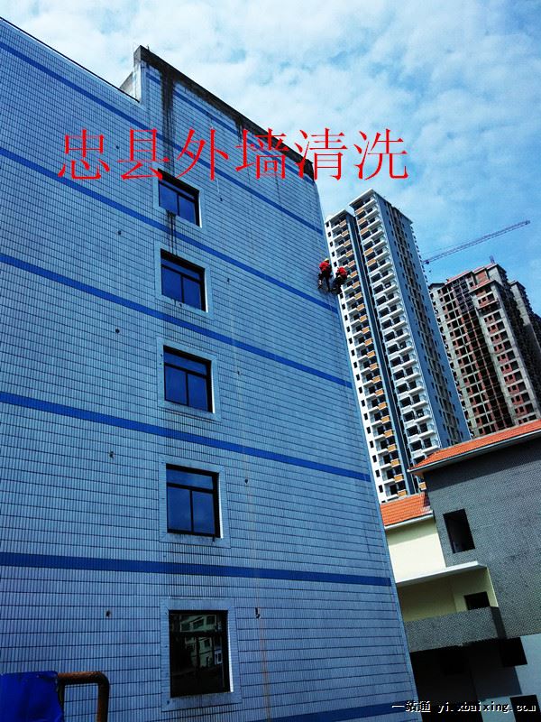 忠县哪家清洗瓷砖外墙最干净? 外墙清洗的方法和细致事项 高空外墙清洗是成都外墙清洗公司的一个专业,安全的外墙清洗部门。该部门对于外墙清洗采用了以下几个步骤进行: 1 、采用的清洗方法: ① 高空作业吊船 ; ② 高空作业吊板; ③ 高空作业搭架。 选择采取何种体例清洗,重要是根据建筑物的造型,露台面结构,建筑物地面周围环境等而定。 2 、清洗外墙必要细致的事项: ① 瓷砖的清洗,必要细致在清洗的过程中,使用的清洁剂会否损伤瓷砖外观的光洁度。 ② 玻璃的清洗,需细致观察玻璃镀膜的装配情况,镀膜装在里面的就较为好办。如镀膜装在表面的就必要我们清洗玻璃时细致避免损坏玻璃外观的镀膜层。留意使用的工具和清洁剂有否损坏镀膜。 ③ 铝板的清洗就必要采用中性的清洁剂进行清洗,绝对不能采用腐蚀性的清洁剂及磨损性的工具。我们在进行大厦的外墙清洗时,既要保证外墙的清洗能达到清洁如新的结果,又不能对大厦的外墙有任何破坏性的损坏,这就必要我们有较高的专业技术水平,雄厚的外墙清洗经验,才能完成这项工作。 3 、清洗外墙的工作是高空作业app应用,伤害性很高,为了绝对保证安全作业,我们每时每刻都要保持高度的警觉性,统统要按操作规则办事,不能有半点疏忽。 有以下情况者不得进行高空作业: ① 未经主管批准和未经安全技术操作训练者; ② 经大夫诊断,患故意脏病、高血压病和当天有病,身体不适宜高空作业者; ③ 严禁酒后进行作业; ④ 气候恶劣而影响作业等; 作业前的检查预备: ① 检查吊船或绳索有否损坏、拆裂征象; ② 检查吊船各部件是否正常,工作环境是否正常。 操作规定: ① 船上操作,精神要集中,不许言笑打闹; ② 作业时吊船不能超载,楼顶应有人配合各项工作; ③ 操作人员必须系好安全带,安全带应扣好在船上的保险绳上。
