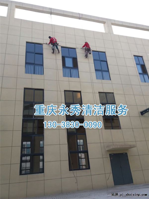 重庆永秀家政服务有限公司提供外墙清洗,开荒清洁,酒店保洁,地毯保洁等服务咨询热线:13038300090 外墙清洗服务好,专业强,值得选择!! 一,准备工作 1.1、查看天气情况。 气候条件:外墙清洁必须要在良好的天气情况下才能进行,特别是风力应小于5级,超过5级风力应立即停止工作;雨雪及大雾天气和低温天气(0度以下)等条件下都不适合进行外墙清洗。 1.2、人员准备: 1.2.1、项目经理: 具有多年各种类型外墙清洗管理经验与实施经验,对项目的实施进度及质量负责;负责解决项目施工过程中作业问题及安全作业方法。 1.2.2、现场主管: 需要具有多年各类型大厦高空外墙清洗作业的实施经验,配合项目经理对作业现场人员进行调度并指导作业,具有安全作业的技术,能指导施工安全进行。 1.2.3、外墙清洗作业人员: 年满18岁-40岁,经体格检查合格后方可从事高空作业。凡患有高血压、心脏病、癫痫病、精神病和其它不适于高空作业的人,禁止登高作业。 具有大楼清洗作业经验,体重在60公斤以下,视力良好,有一定安全作业技能。 1.3、工具准备 1.3.1、外墙清洗的设备工具必须处于良好的状态,如果吊板发毛或部吊绳分丝股渐裂的现象应立即更新。 1.3.2、吊板外墙清洗高空作业专用工具: 有工作绳、安全绳、吊板(座板)、高空安全带、自锁器、U型扣等安全工具。 1.3.2.1、工作绳:材质为锦纶,规格:直径为16-20 mm,作用:主要用于吊板式座板下吊、登高作业用。工作绳通过下滑扣内的活络节连接吊板形成高空吊板系列。生命绳和高空人员身上的安全带上的自锁钩连接,形成登高人员的安全系统。 1.3.2.2、 安全绳:材质为高强丝,规格:直径:18mm—20mm,作用:主要用于配合工作绳使用。高空人员通过座板吊在工作绳上,把安全带的自锁扣用自锁器连接到安全绳上,能够确保提高安全系数。 1.3.2.3、 吊板:又称座板,材质为缩木板组合而成,吊带由纤维纺织而成,都具有一定的抗拉强度。作用:高空下吊施工时,高空人员就坐在吊板上向下坠滑操作。防滑座板断裂载荷大于4400牛顿。 1.3.2.4、 高空全背式安全带:材质为纤维纺织而成。安全带由两根肩背和一根腰带连成一体组成,另外还有两个带套套有大脚处,它通过自锁钩与工作绳连接成一体。 1.3.2.5、 自锁器:材质为不锈钢制成。作用:连接安全带与安全绳上,当高空施工人员因工作绳断裂而下坠时,自锁钩的自锁装置会因人体的重量拉动而自锁,使下坠的人被生命绳拦住。 1.3.2.6、 U型扣:是由16mm高强度钢制成的U型扣,并有螺栓销连接。 以上6种组装成一个坐式高空吊板。 二、方案实施 2.1、现场安全监督员分工 安全监督员分工:楼顶设立1人做安全保护; 设立一人负责协助与高空人员工作;楼底设1人做巡视安全保护人员及放置高空作业指示牌。整个施工工作过程中,安全监督应自始至终作现场安全监督,不得擅离职守. 2.2、区域设置障碍:高空作业区地面要划出禁区,用竹篱笆围起,并挂上“闲人免进”、“禁止通行”等警示牌。 2.3、作业操作方法 2.3.1、先在楼顶平台选一个栓绳子的固定地方,比如管道等,绳子要多栓几圈,反复负重试验做到万无一失。将所有绳子搭角、搭棱、搭檐的地方用橡胶或地毯块垫底,以防磨擦。 2.3.2、将吊绳在坐式吊板上的U型蟹扣里打好一个特殊的结,在板边栓上吊桶,里面装少半桶清洁剂(药水)。作业人员带上玻璃刮洗器、抹水器及抹布,就可以上板开始工作。因为有一种特殊的系扣方法,所以在工作中,吊板不会往下滑。 2.3.3吊板操作法 2.3.3.1吊板由悬挂支架、大绳(直径16毫米,长度视大厦高度而定),吊板和安全带、安全滑动锁组成。使用前要认真检查各部件功能是否有效。